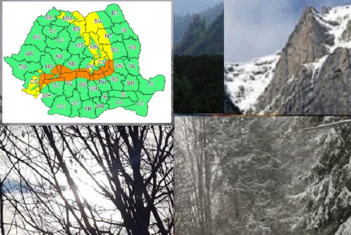 Cod portocaliu: Avertizarea de cod portocaliu este valabilă în intervalul 18 februarie, ora 02.00 – 18 februarie, ora 11.00.