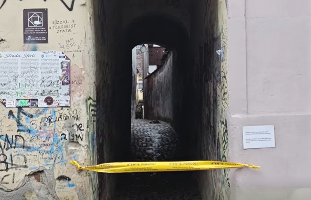 Celebra strada Sforii din Brașov se închide temporar, în regim de urgență, din motive de siguranță publică. Specialiștii au constatat că tencuiala de pe pereții clădirilor se desprinde, prezentând risc major de accidentare.