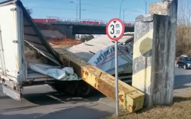 Autocamionul a acroșat limitatorul de înălțime, iar acesta a căzut strivind remorca. Accidentul s-a produs pe strada Automotoarelor.
