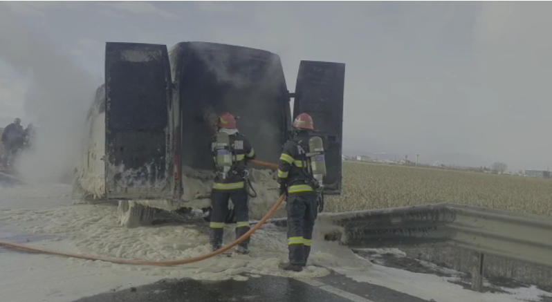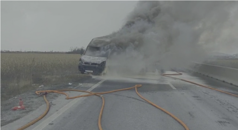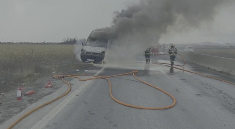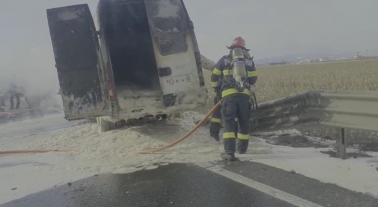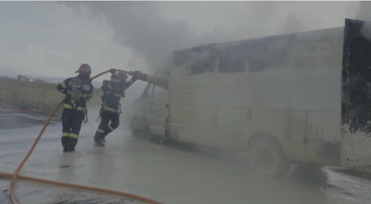 Pompierii brașoveni au fost solicitați să intervină pentru stingerea unui incendiu izbucnit la o dubă care se deplasa pe centura Ocolitoare a Brașovului.