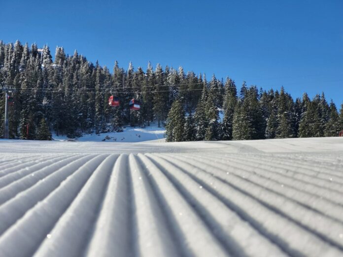 Stratul de zăpadă bătută de pe pârtiile deschise schiului are între 20 și 35 de cm.