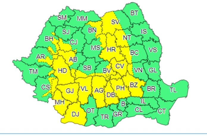 ANM a emis o avertizare cod galben pentru mai multe județe, printre care și Brașov, pentru duminică, 26 iunie, în intervalul orar 12-24.