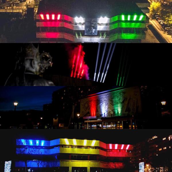 Casa de Cultură a Sindicatelor (redenumită recent Casa Artelor ) din Miercurea Ciuc a fost luminată, miercuri seară, în culorile drapelului României, în premieră, cu prilejul Zilei Naţionale.