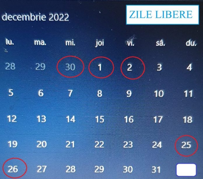 Pentru recuperarea zilei de 2 decembrie, instituțiile și autoritățile publice își vor prelungi corespunzător timpul de lucru până la data de 31 decembrie 2022 potrivit planificărilor stabilite.